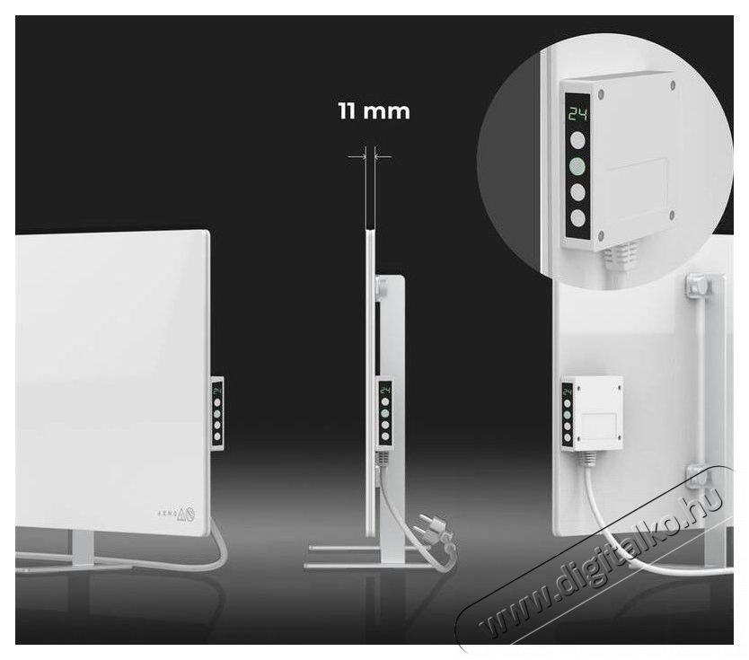 Az AENO GH3S infravörös fűtőberendezés modern kialakításával biztosan lenyűgöz. A fűtőtest vékony és tartós, így nem lesz útban. Az AENO GH3S Lengyelországban készül, prémium minőségű anyagokból, például homokfúvott eloxált alumíniumból és átlátszó zománcozott edzett üvegből. Az AENO GH3S falra szerelhető vagy a padlóra helyezhető. Ha úgy döntesz, hogy a padlóra helyezed, akkor egyszerűen csavarozd az AENO GH3S elektromos fűtőtesthez a lábakat, amelyek csúszásgátló gumibetétekkel vannak ellátva. A fali konzolok szintén a csomag részét képezik. Az elektromos fűtőtest vízszintesen vagy függőlegesen a falra szerelhető.