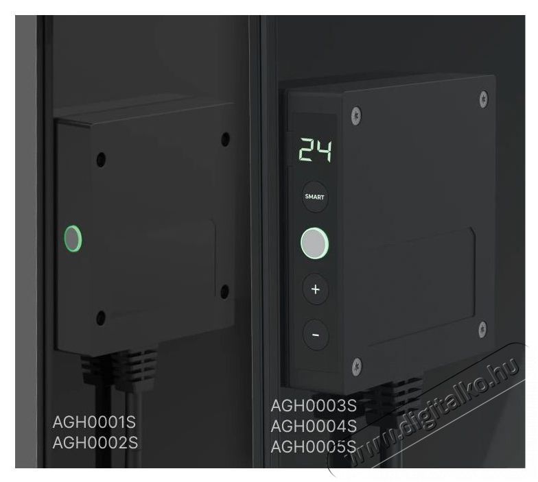 A stílusos és könnyen leolvasható LED kijelző a kezelőszervekkel közvetlenül az infravörös fűtőberendezésen található. A hőmérséklet beállítására szolgáló gombokat (+-), egy háttérvilágítású bekapcsológombot, az intelligens üzemmód be- és kikapcsolását, illetve egy kijelzőt találsz rajta, amely az aktuális hőmérsékletet mutatja. Az AENO GH3S fűtőpanelt az alkalmazás segítségével is vezérelheted, ahol aktiválhatod a gyermekzár funkciót a fűtőberendezés véletlenszerű bekapcsolásának megakadályozására.