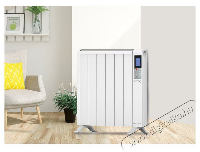 Rohnson R-0415 IonicA Rohnson R-0415 Ionic teljes értékű fűtőrendszerként használható, hiszen minden helyiséget tökéletesen és gyorsan kifűt. Szerkezetének anyaga rendkívül tartós acél, hat bordával és kimagaslóan hatékony alumínium fűtőelemekkel kiegészítve. A fűtő funkció mellett ionizációs funkcióvalbővített, így tiszta és friss levegőt biztosít. A Rohnson hősugárzó LCD kijelzővel felszerelt, vezérlése elektronikus, mutatja a szoba aktuális hőmérsékletét. Tartozik hozzá továbbá egy távirányító, melynek segítségével kényelmesen beállíthatod az összes funkciót és programot. A fűtőtest állhat szabadon, vagy a falra szerelhető a csomagbantalálható tartozékok segítségével.
