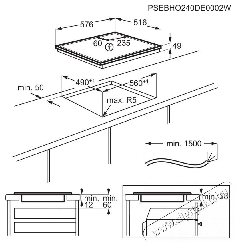 - Az esztétikus AEG főzőlap mérete: 4,6 × 57,6 × 60 cm (ma×szé×mé)