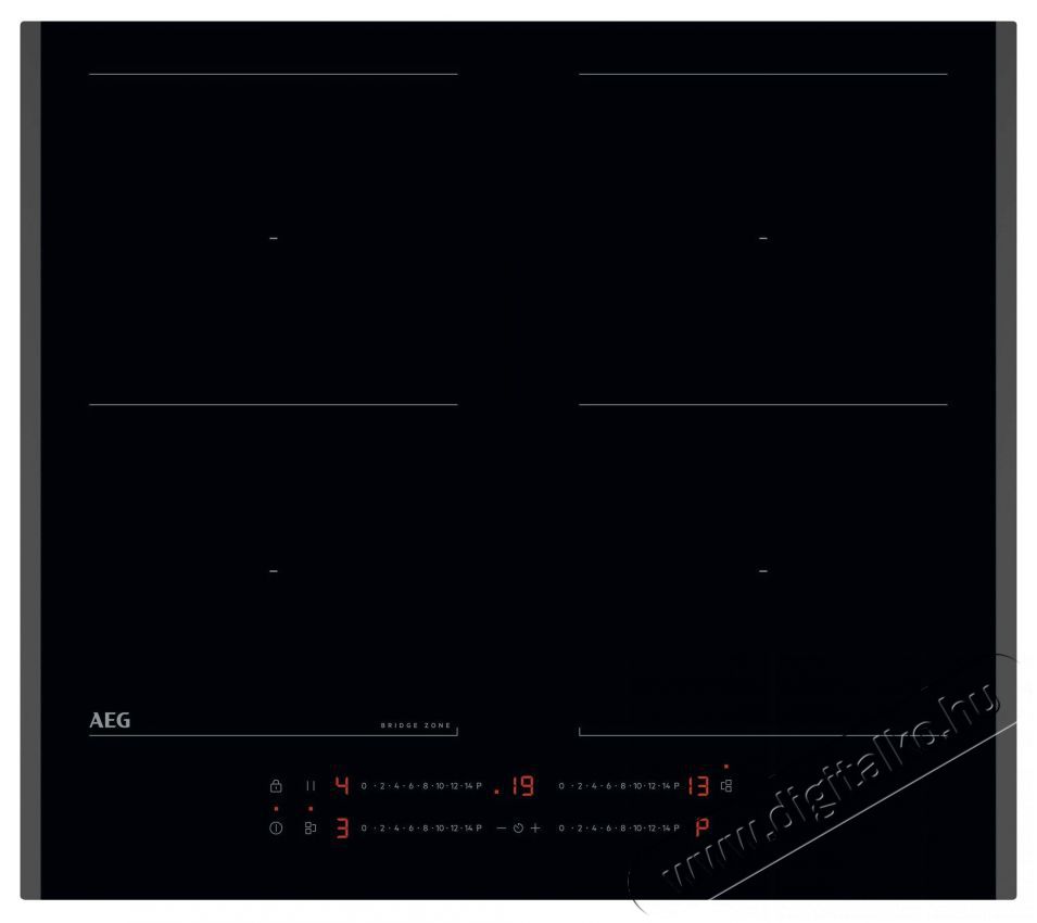 - Az esztétikus AEG főzőlap mérete: 4,4 × 59 × 60 cm (ma×szé×mé)