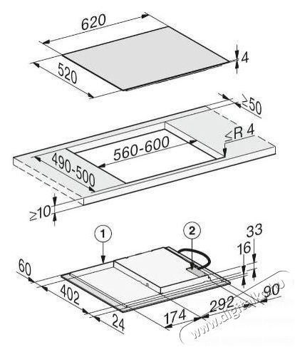 - A kifinomult Miele főzőlap méretei: 5,3 × 62 × 52 cm (ma×szé×mé)