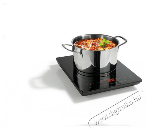 Egyszerűen egy érintésselIrányítsd a főzést három érzékelőgombbal, csúszkával és fényjelzőkkel. Az érzékelőgomb "menü" segítségével válasszon 7 előre beállított program közül, köztük a forrófazék, ragu, kevergetéses sütés, leves, forralás, a tej és a párolás. A főzés automatikusan elindul az előre beállított teljesítménnyel vagy hőmérséklettel, az előre beállított ideig. A teljesítmény és az idő manuálisan is beállítható.