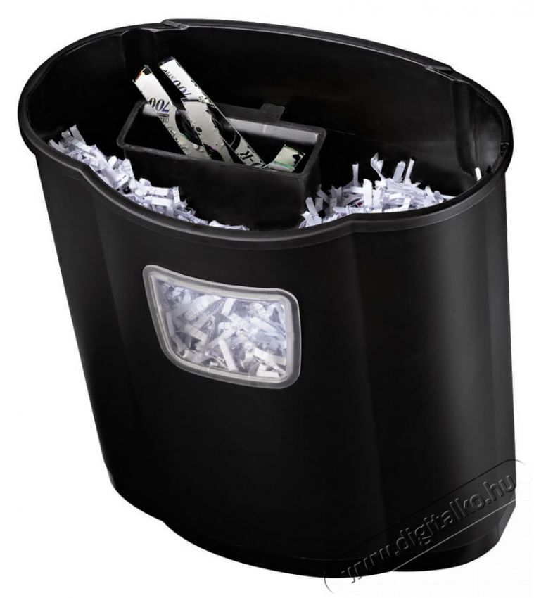 A műanyag lapok összevághatók egy külön bejárati nyíláson keresztül, de a papír bejövő nyílásán keresztül is kisebb darabokra vághatók