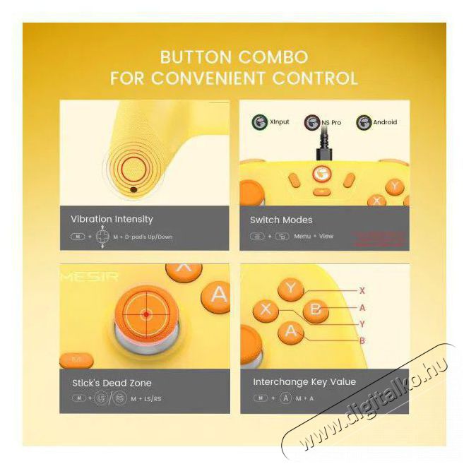 A(z) GameSir Nova Lite Multiplatform Gaming Controller - Gold Yellow kontroller legfőbb funkciói- A vezeték nélküli csatlakozás komoly teret garantál a készüléktől