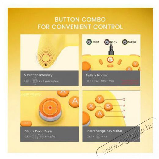 Valami másra vágysz, mert már meguntad a billentyűzetet meg az egeret? Nem kell tovább keresgélned! A(z) GameSir Nova Lite Multiplatform Gaming Controller - Gold Yellow kontroller nagyszerű segítség ahhoz, hogy megbízhatóan irányíthass, PC, Nintendo Switch, Mobiltelefon és Nintendo Switch 2 platformokon. A játékélményt még tovább fokozzák az alábbi funkciói: analóg stick. Az analóg karok segítségével a kurzor tökéletesen irányítható. A távirányító arany színe és művészi alakja a kapcsolók tartósságával társítva minden játékimádót megörvendeztet.