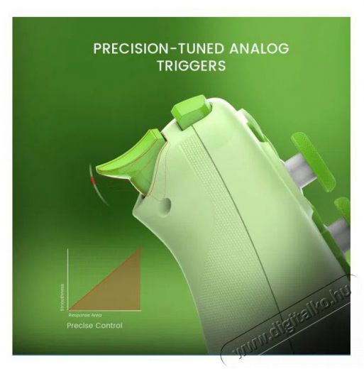 Kontroller - PC, Nintendo Switch, Mobiltelefon és Nintendo Switch 2 platformhoz, kompatibilitás: Android, iOS, Windows 10, vezeték nélküli csatlakozás, USB-C, analóg stick, zöld kivitel