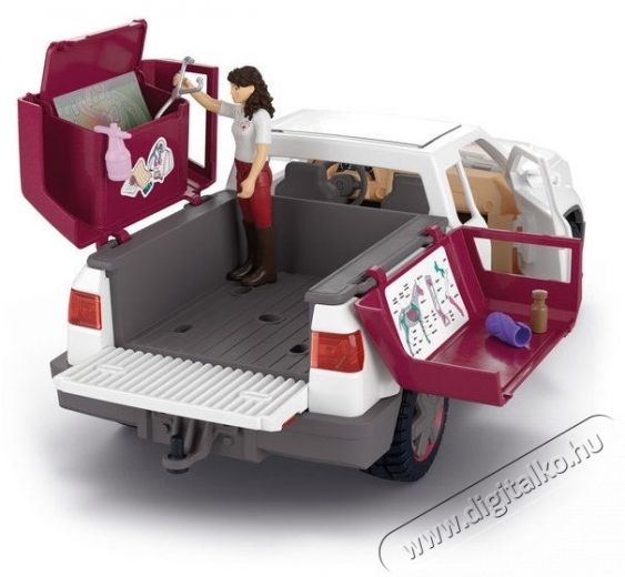Schleich 42704 Mobil állatorvos utánfutóval főbb jellemzői- A Schleich készlet lehetővé teszi a gyermekek számára, hogy állatorvost játsszanak és gondoskodjanak az állatokról