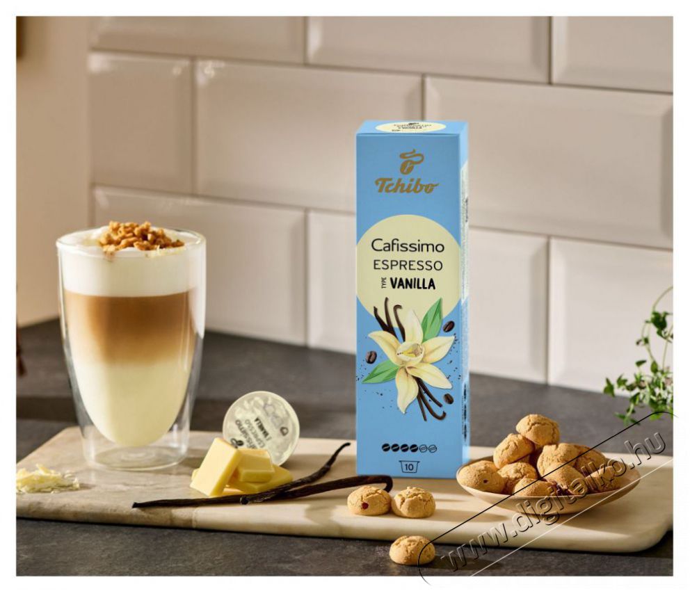 Fedezze fel a Tchibo Cafissimo Flavoured Edition kávét. Természetes ízesítésű, kiegyensúlyozott eszpresszó: élvezze az Espresso Vanilla kiegyensúlyozott aromáját, mely finom vanília jegyekkel varázsolja el. Cappuccino, latte macchiato vagy flat white formájában ajánljuk.