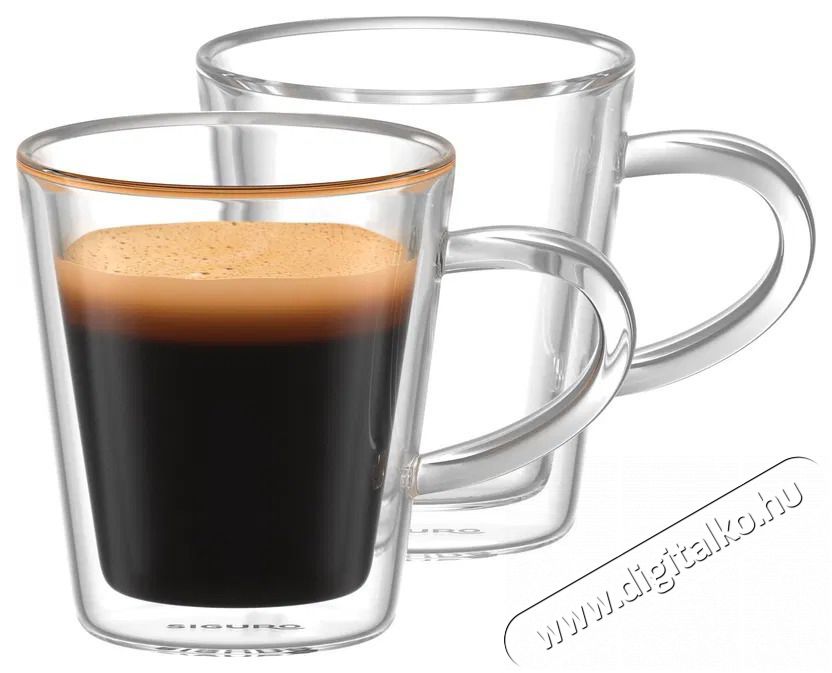 Siguro Espresso termopohárA Siguro egyedülálló termopoharával a következő szintre emelheted a kávézás élményét. Ezek a 90 ml-es designpoharak kézzel fújt, rendkívül tartós boroszilikát üvegből készülnek, amelyet számos kiváló tulajdonság, különösen a hőszigetelés jellemez. Mind a mindennapi, mind az ünnepi étkezéshez tökéletesek, és érdekes ajándékötletet is jelentenek.A csomag két Siguro poharat tartalmaz - így megörvendeztetheted partneredet, kollégádat vagy látogatódat is egy espressoval.