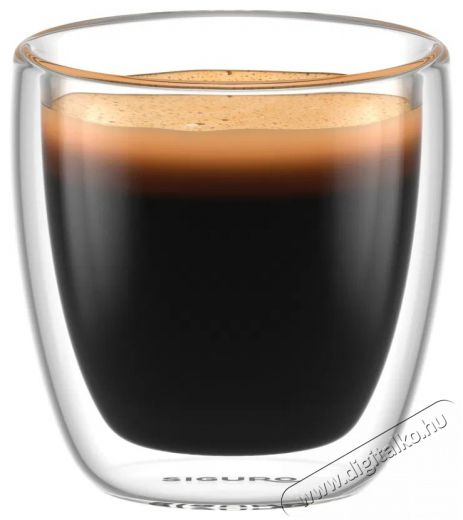 Siguro Espresso termopohárA Siguro egyedi termopoharával egy finom eszpresszó tökéletes élményt nyújthat. Ezek a 90 ml-es, stílusos poharak kézzel fújt, rendkívül tartós boroszilikát üvegből készülnek, amelyet számos kiváló tulajdonság, különösen a hőszigetelés jellemez. Nemcsak a mindennapi és ünnepi étkezésekhez tökéletesek, hanem ajándékötletnek is nagyszerűek. A csomag hat Siguro poharat tartalmaz - így partneredet, kollégádat vagy látogatódat is megörvendeztetheted egy finom espressóval!