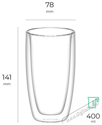 - Dupla falú - megtartja az ital hőmérsékletét és nem párásodik be