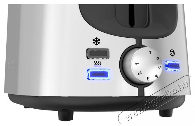 A nyílások lehetővé teszik egyszerre két, legfeljebb 29 mm vastag, pirítós pirítását. Nem maradt el a péksüteményrács másfajta péksütemények (kifli, zsemle, bagett, stb.) sütésére. A pirítás azonnali befejezéséhez nyomd meg a STOP gombot.