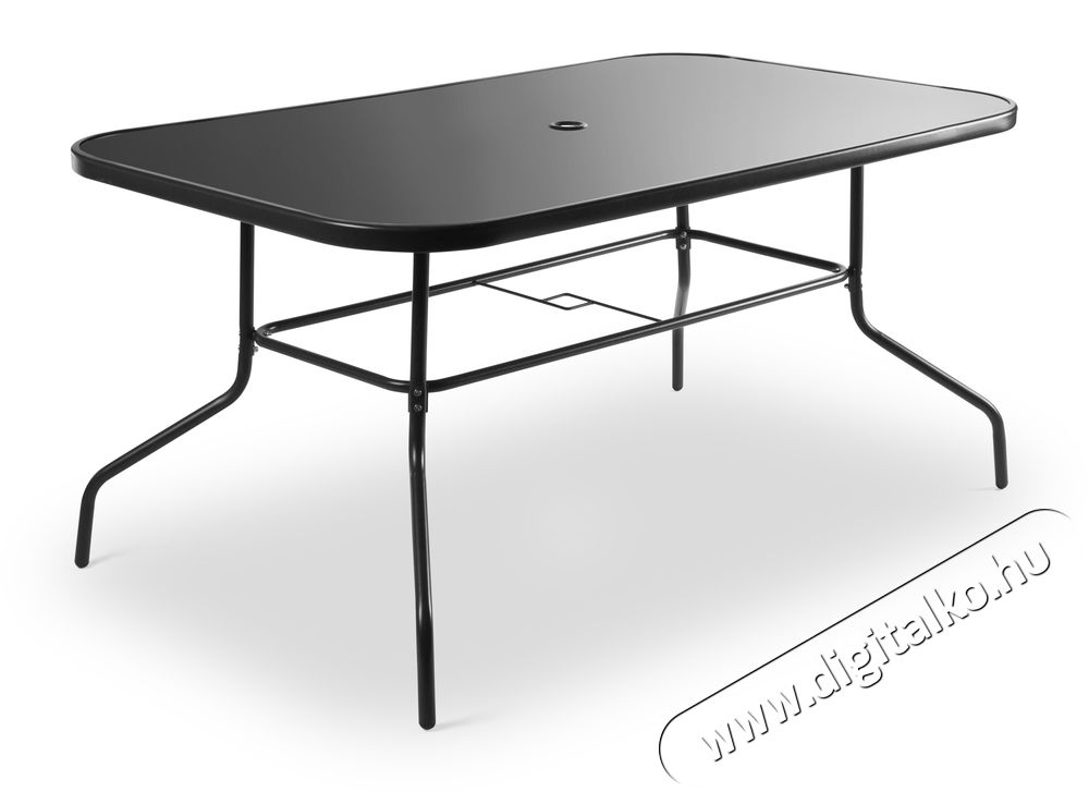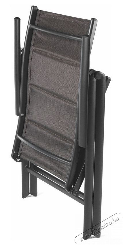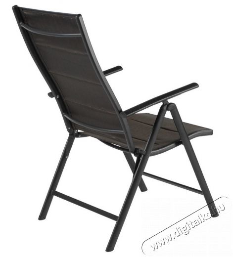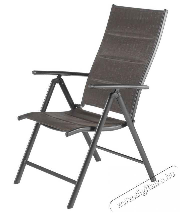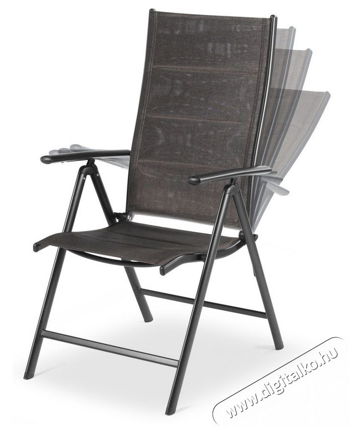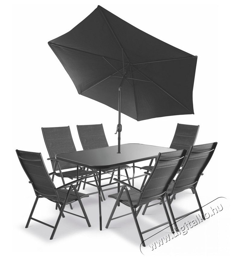 MELISA exkluzív kerti bútor szett tartalmaz: 6 db állítható széket, 1 db asztal és 1 db napernyő. Az asztal egy fekete, nagyon tartós, edzett üveglappal borított , melynek méretei 150 x 71 x 93 cm. Székek állítható háttámlájúak és karfa duplán varrott, rugalmas, szintetikus szövetből készültek, amely kényelmes ülést biztosít. A napernyő egy tekerőkar segítségével nyitható és zárható. A felső csuklópontnak köszönhetően, könnyen állítható az árnyékolás szöge is. A kerti bútor szett kültéri használtra ajánlott.