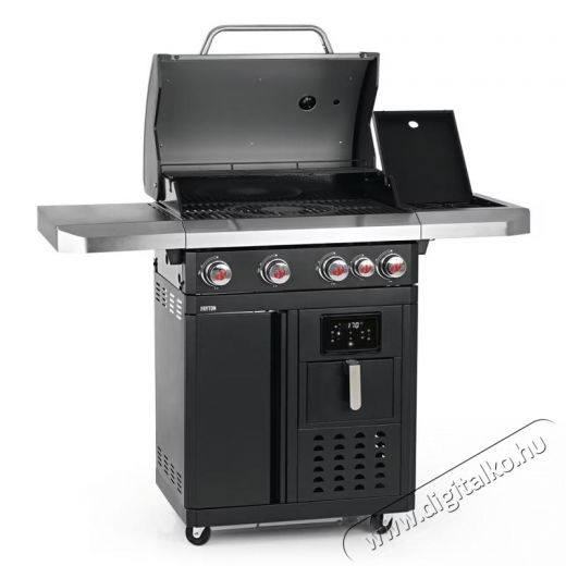 Ez a készülék egy technikai újítás, amely valóra váltja álmainkat: mostantól egyszerre grillezhet, meleglevegős sütőben süthet és főzhet, mert a LANDMANN FRYTON 4.1 cooK gázgrill meleglevegős sütővel rugalmasabb és sokoldalúbb, mint valaha. A három grill 65 x 40 cm-es grillezőfelülettel elegendő helyet biztosít hús, hal vagy akár tofu sütéséhez, és elkészítheti pl. burgonyát, mártásokat vagy zöldségeket, valamint ropogós sült krumplit is tálalhat. De a legfontosabb, hogy a gázgrill beépített 3 literes meleglevegős sütővel és LED-kijelzővel rendelkezik, így ropogós nuggets, chips vagy burgonyaszeletek is felkerülhetnek a grillmenüre – gyakorlatilag olaj nélkül.
