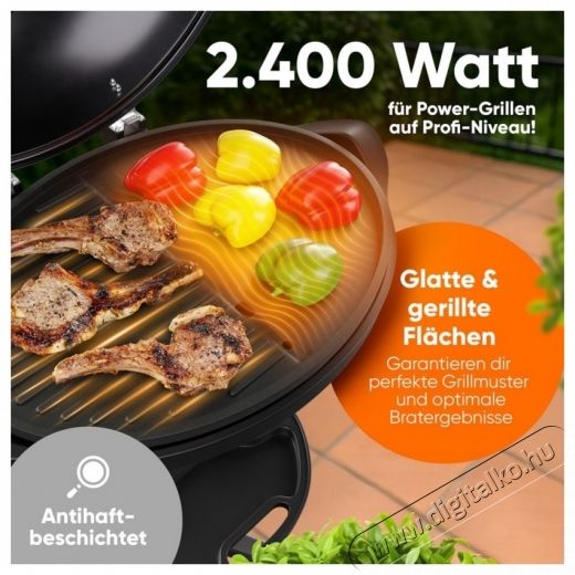 • Az akár 2400 wattos teljesítménnyel az elektromos grillasztalos grill egyenletes hőeloszlást és erős grillezési teljesítményt biztosít - alumínium grilllappal, sima és barázdált felülettel a tökéletes grillezési élmény érdekében