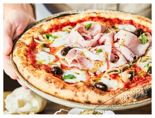A 360°-ban forgatható cordierit pizzakő segítségével tökéletes, egyenletesen átsült pizzát készíthet, mindössze egy gombnyomással.