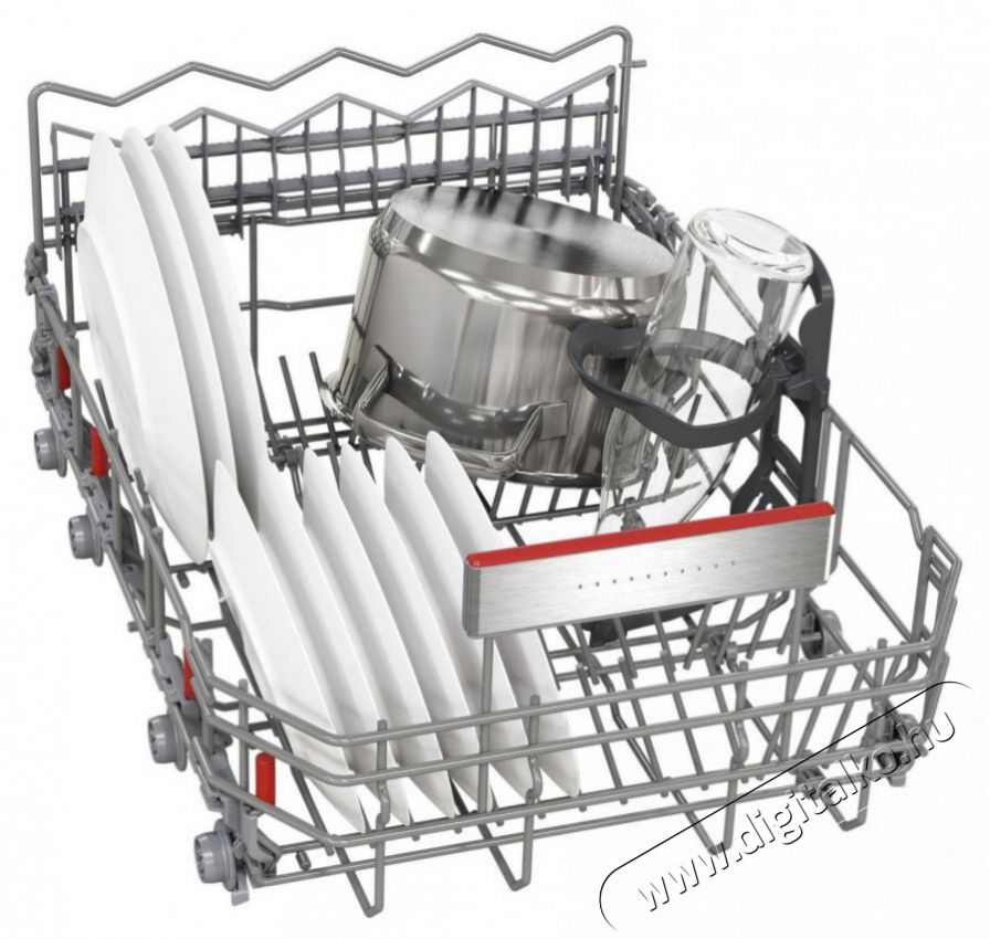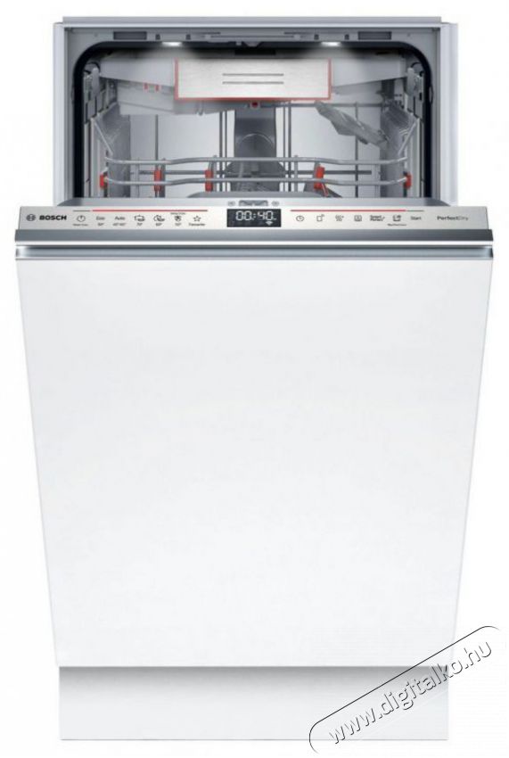 A mosogatógép használatával időt, vizet és munkát spórolhatsz meg. A keskeny (45 cm széles) Bosch beépíthető mosogatógép tökéletes választás a kisebb háztartásokba. A beépíthető mosogatógép dizájnját egybehangolhatod a konyhád kinézetével úgy, hogy a konyhaszekrény mintázatával megegyező ajtót szereltetsz rá. Az ajtó felső részén lévő kezelőpanel csak akkor engedi az irányítást, amikor a készülék ajtaja nyitva van. A teljesen integrált mosogatógép igencsak elegánsan hat és nem bontja meg a konyha egységes kinézetét.