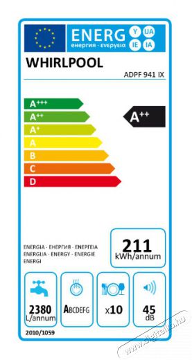Programok: | 6. Érzék 40 - 70 °C szenzorprogram, Gyorsprogram, 30 perc (szárítás nélkül), Kímélő üvegprogram, Eco 50 °C referenciaprogram, Intenzív 65 °C |