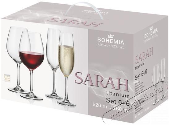 Az elsőrangú Bohemia Royal Crystal SARAH Boros- és pezsgőspohár készlet, 12 db pohár lényeges sajátságai: