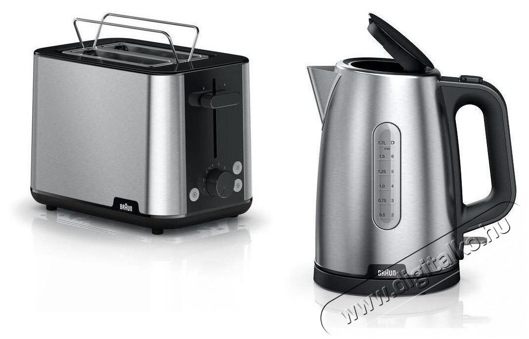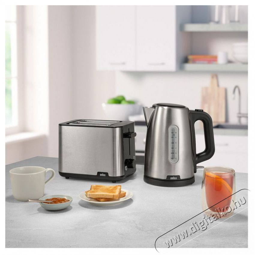 A vízforraló a legtöbbünk számára nélkülözhetetlen háztartási eszköz. A kiváló minőségű BRAUN vízforraló 1,7 l térfogatot és könnyű kezelést kínál. Kiváló minőségű anyagokból készült, úgy mint rozsdamentes acél. Nemcsak a megjelenése elegáns, de egyben praktikus és számos funkciót is kínál, nem tartalmaz egészségre káros anyagokat, és nem visz át semmilyen nem kívánt szagot vagy ízt, függetlenül attól, hogy milyen gyakran használjuk. A rozsdamentes acél anyag elegáns és praktikus, és tökéletesen belesimul szinte bármely konyha stílusába. A praktikus BRAUN elektromos vízforraló energiafelhasználása 2200 W. A praktikus eltávolítható szűrő felfogja a szennyeződéseket és a vízkőlerakódást a csészébe öntéskor. A dekoratív megjelenésű és megbízható BRAUN elektromos vízforraló számtalan hasznos funkciója és előnyös tulajdonsága biztosítja a könnyű és gondtalan használatot.