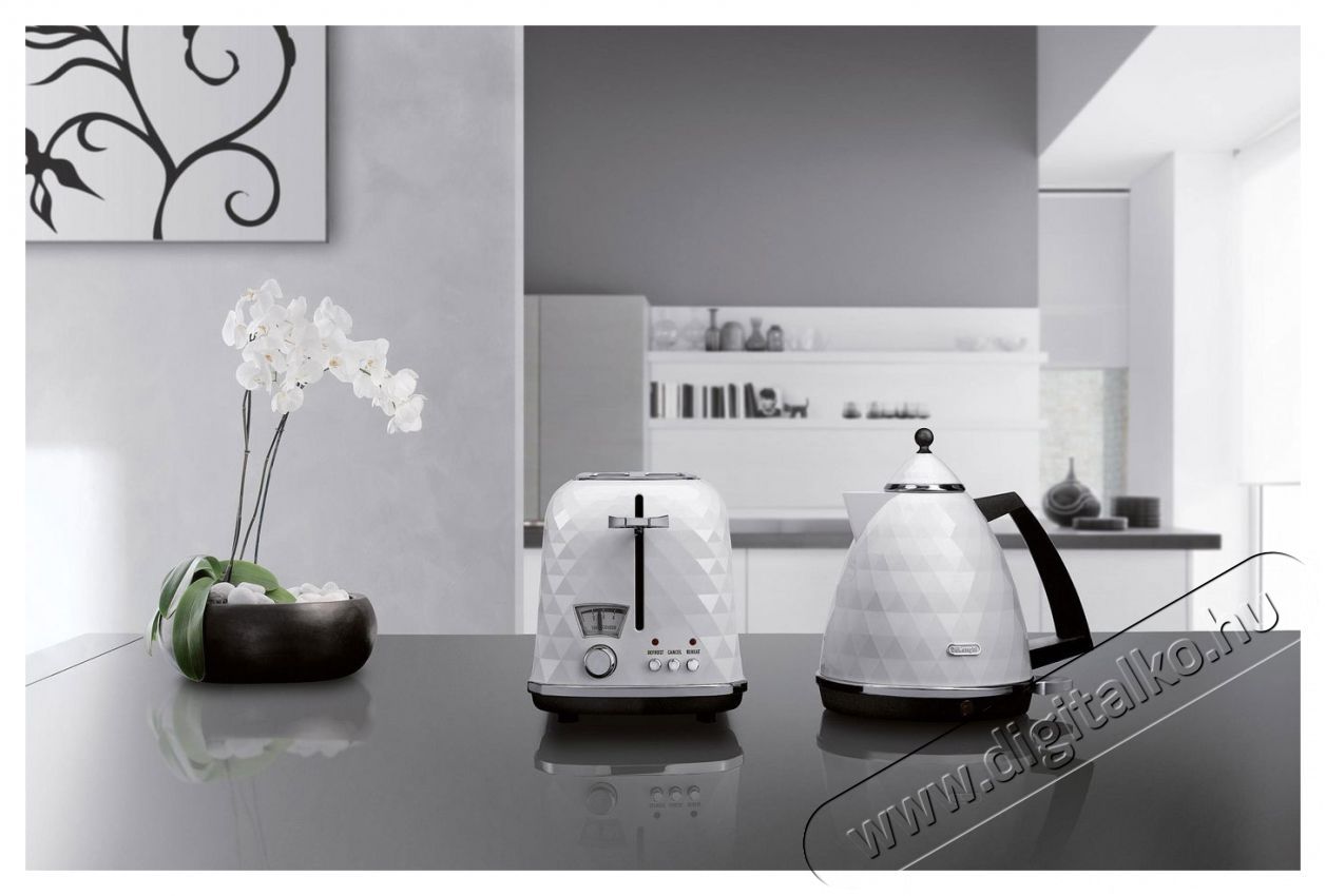 Időtlen formatervezésA DE`LONGHI CTJ 2103. W kenyérpirító már első pillantásra lenyűgöz az exkluzív műanyag felületével és színes kialakításával, így tökéletes kiegészítője lesz minden konyhának.