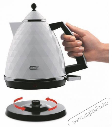Praktikus vízszintjelzőA De`Longhi KBJ 2001.W vízforralóval való munkát a vízszintjelző és a 360°-ban forgatható talp könnyíti meg.