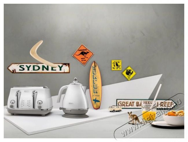 De`Longhi Icona Capitals CTOC2103.W és De`Longhi Icona Capitals KBOC2001.W készletA De`Longhi Icona Capitals CTOC2103.W kenyérpirítólenyűgöz az Icona Capitals termékcsaládra jellemző elegáns kialakításával, minőségével és stílusos megjelenésével. Ez az olasz stílusú eszköz matt fémes fehér felületével Sydney város hangulatát idézi. A biztonságos használatot csúszásmentes talpak biztosítják. A De`Longhi Icona Capitals CTOC2103.W stílusos megjelenésű kenyérpirító 6 különböző pirítási fokozattal rendelkezik, így mindig az igényeidnek megfelelő pirítóst készíthetsz.