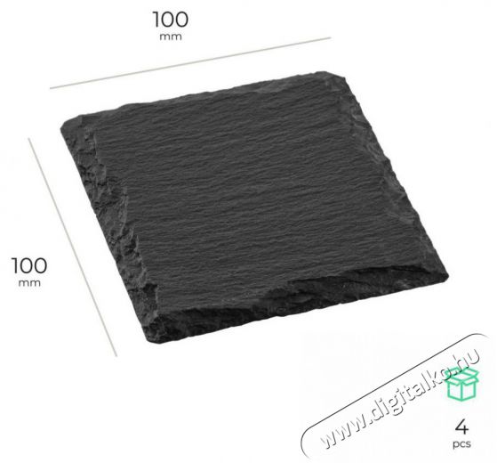 A Siguro Slate tálaló tányérok kiváló minőségű és tartós palából készülnek, speciális bevonattal. Emellett természetesen káros anyagoktól mentesek és egészségre ártalmatlanok, hiszen nem zárják magukba a szagokat és az ízeket. A készlet négy darab 100 × 100 mm-es tálcát tartalmaz, vastagságuk 5 mm, és eredeti megjelenésüknek köszönhetően dekorációként is használhatóak.