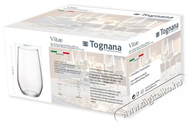 •     A kiváló Tognana pohár klasszikus átlátszó megjelenést kapott
