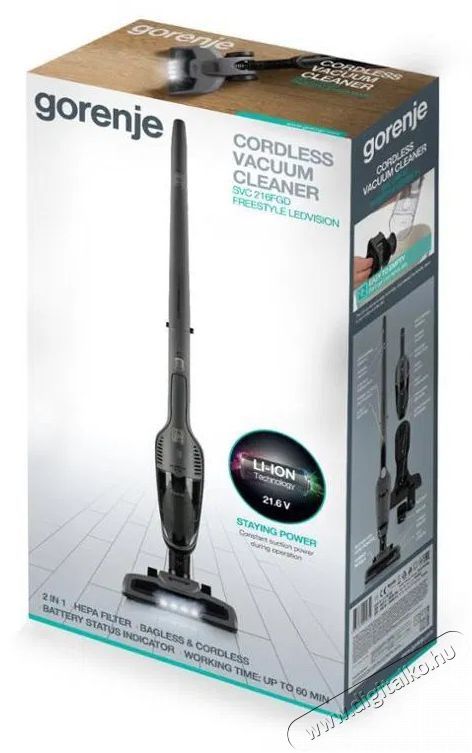Praktikus vezeték nélküli üzemelésA tápellátásról akkumulátor gondoskodik, úgyhogy nem fog korlátozni a konnektorok távolsága. 21,6 V-os Li-ion-akkumulátora teljes töltéssel 60 perc folyamatos porszívózást garantál. A nagyszerű GORENJE vezeték nélküli álló porszívó 6 óra alatt tölthető fel újra. Az éppen töltődő akkumulátor állapotát az integrált töltöttségi szint jelző fogja megmutatni. A csomagnak egy praktikus adapter is a része.