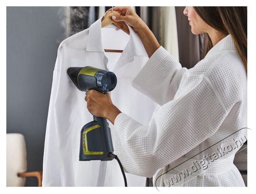 Ruhagőzölő - 1400 W teljesítmény, 30 másodperces felmelegedési idő, 100 ml-es kivehető víztartály, 2,6 m hosszú kábel, OptiFlow technológia (kombinálja a gőz és a szívóerőt), 3 üzemmód (csak gőz, kíméletes szívás, turbó szívás), minden típusú vasalandó textíliához, fűtött vasalódeszka, gőzjelző lámpa, Franciaországban készült, 15 év garancia a javításra.
