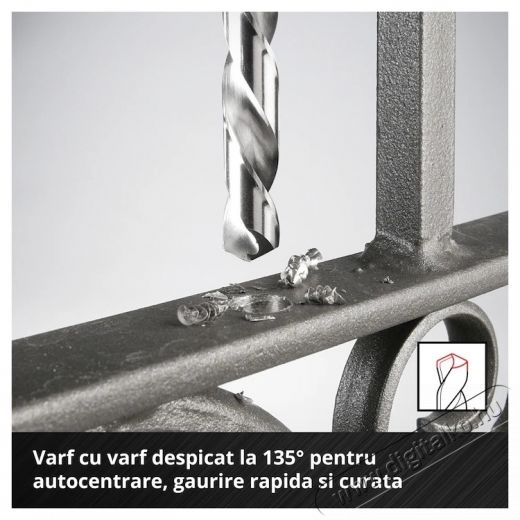 • Gyors központosítás - Az Einhell fúrókészlet 135°-os osztott csúcsa gyors központosítást és precíz, gyors fúrást tesz lehetővé.