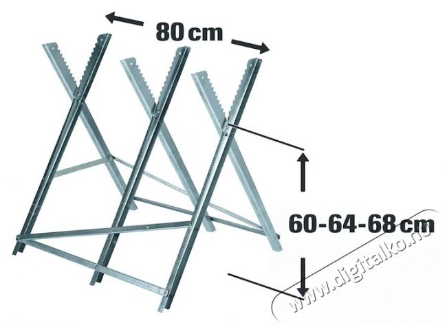 A masszív, horganyzott szögprofilok tartós fémből készülnek. A kényelmes és ergonomikus munkavégzés érdekében a favágóállvány három különböző munkamagasságra állítható: 680 mm, 640 mm és 600 mm. Összecsukható, és így minimális helyen, a fészerben, garázsban vagy pincében pillanatok alatt tárolható, amíg újra szükség van rá.