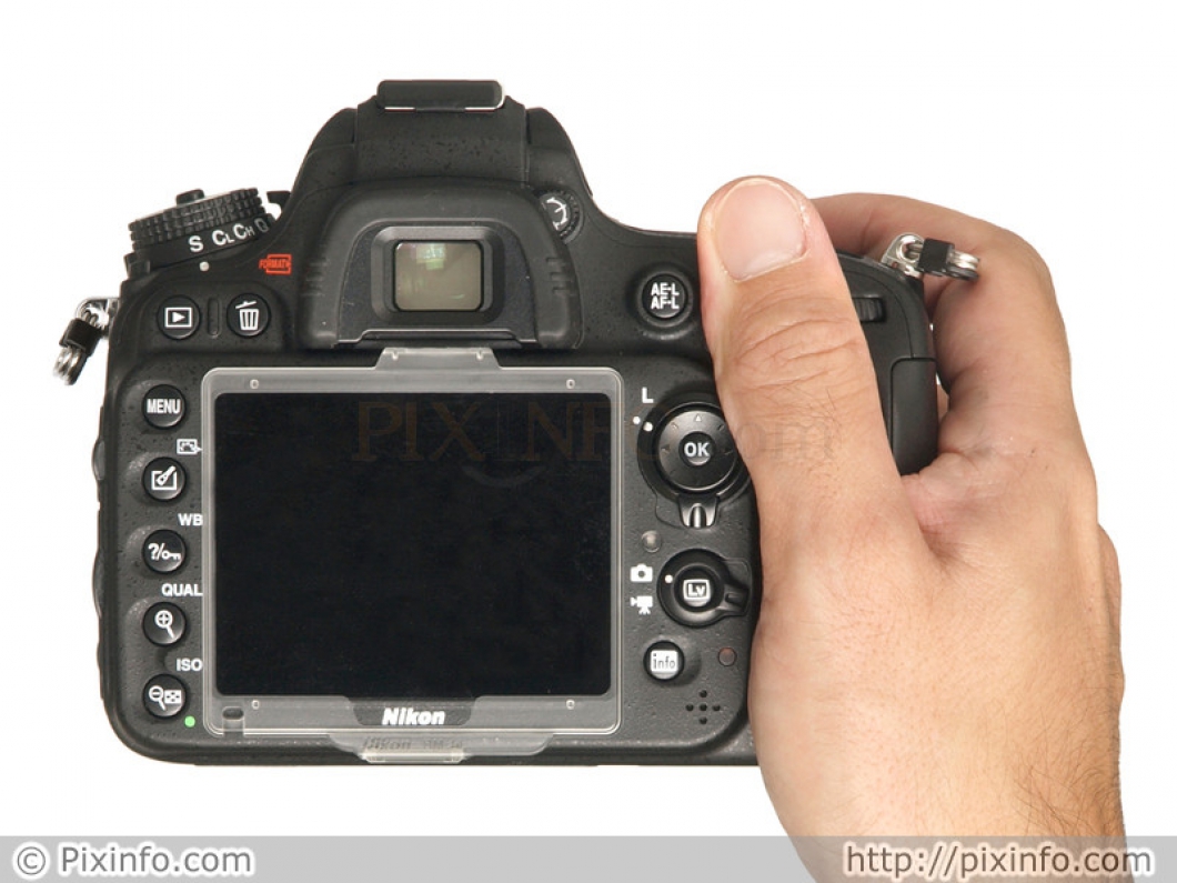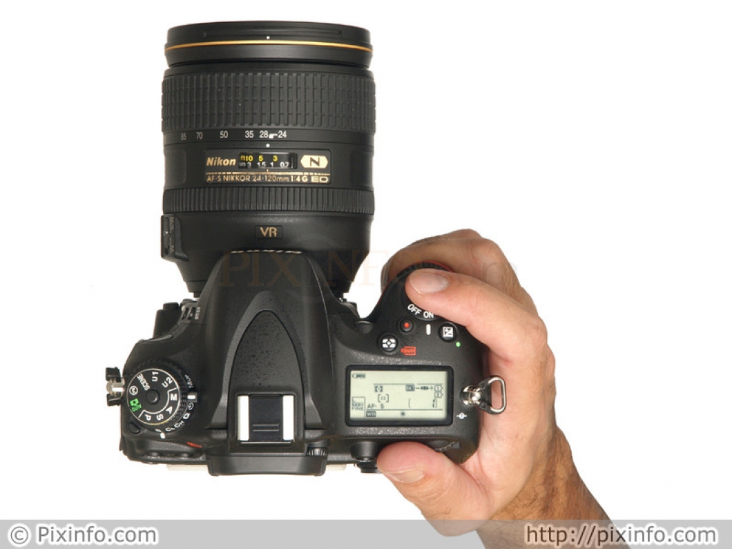 Ahogyan a D800-nál, úgy itt is igen egyszerűen választhatunk az AF módok és pontok között. Az AF módot (egyszeri, követő, automata váltás) a jobb oldali gomb megnyomásával és a hátsó tárcsával állíthatjuk, míg a fókuszpontok közül a hátsó nyolc irányú navigálógombbal választhatunk. A módosítás a felső státusz LCD-n, valamint a keresőben is rögtön látható.