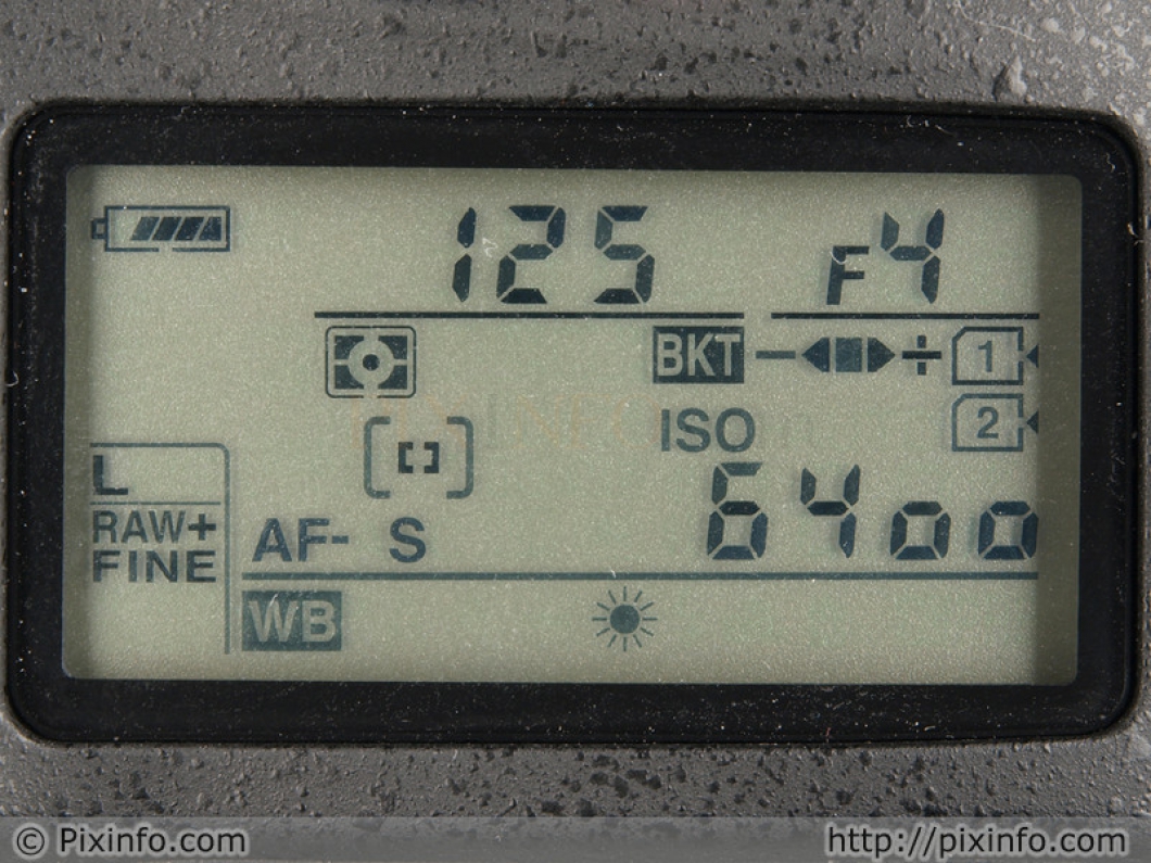 A D600 tetején a D800-éhoz hasonló, háttérvilágításos folyadékkristályos státuszkijelzőt találunk. Ezen a legtöbb paraméter ellenőrizhető fotózás előtt. Ha ez mégsem lenne elég, a hátsó LCD-re is kérhetünk részlegesen aktív státuszkijelzést.