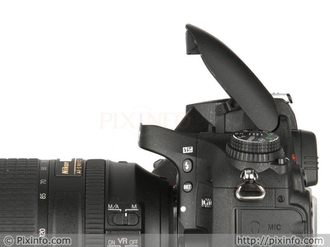 A vázba felpattanó vakut is építettek, mely 12-es kulcsszámú (ISO100, m). Használhatjuk TTL és manuális módban is, legfeljebb 1/128-ig leosztva, 1/3 Fé lépésekben, illetve teljesítmény korrekciót is kapunk -3,0 -+1,0 fényérték tartományban. A vaku a gép bal oldalán lévő kis gombbal nyitható. Ugyanezen gomb és az elülső tárcsa szolgál a teljesítmény korrekcióra, míg a gomb és a hátsó tárcsa a villanó üzemmódjai között lapoz, melyek között megtaláljuk a vörösszem csökkentő elővillanást, a lassú szinkront, és az első-hátsó redőnyre szinkronizálást is.