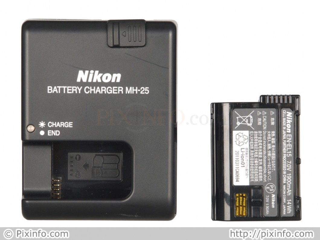 A D600-hoz ugyanazt az EN-EL15 jelű, 7,0 Voltos , 1900 mAh-s, 14Wh energiatároló képességű akkut mellékelik, mint a D800-hoz. A 14 Wh kb. 900 felvétel elkészítésére elegendő energiát jelent. A töltés kb 2 óra 35 percet vesz igénybe.