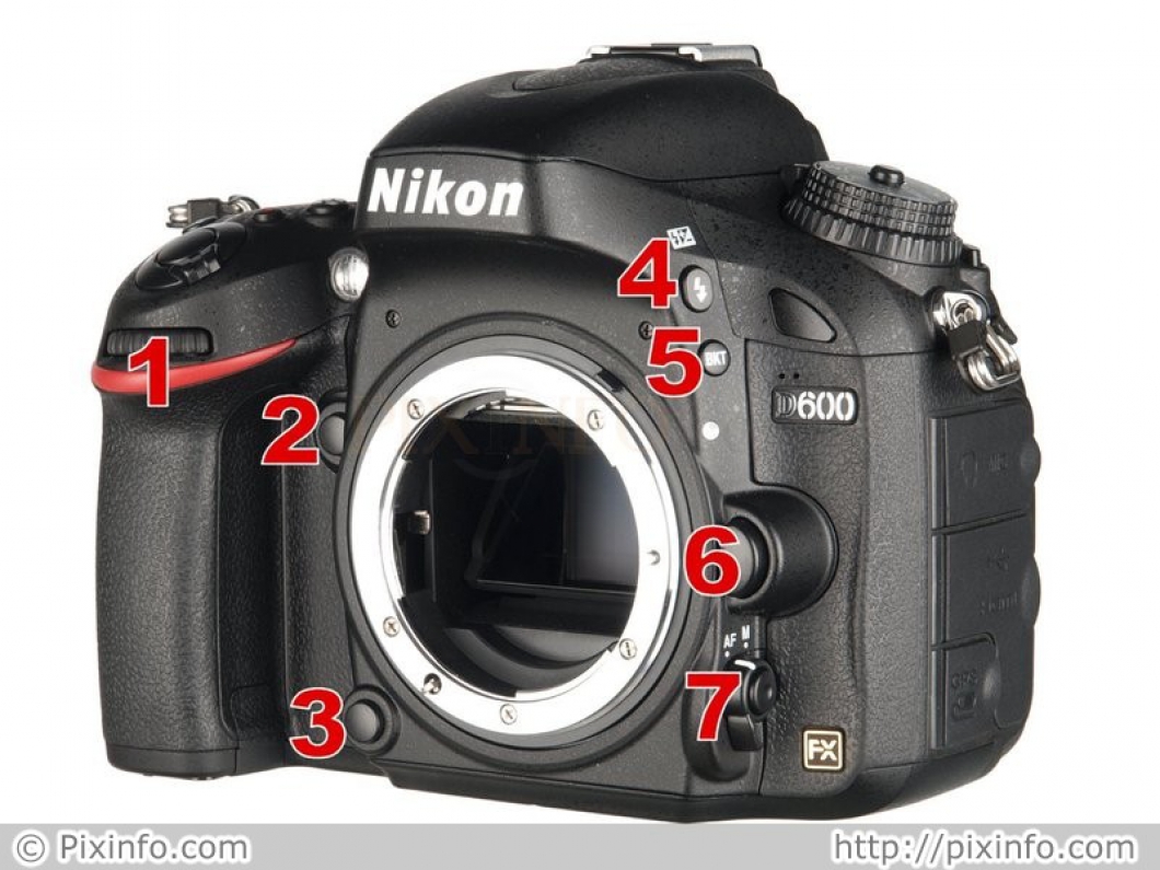 (6) Expozíció kompenzáció gomb: Nyomva és a hátsó vezérlőtárcsát elfordítva +/- 5 Fé értékek között felülbírálható az expozíció. A lépésközök a menüben határozhatók meg (1/3 vagy 1/2 Fé).