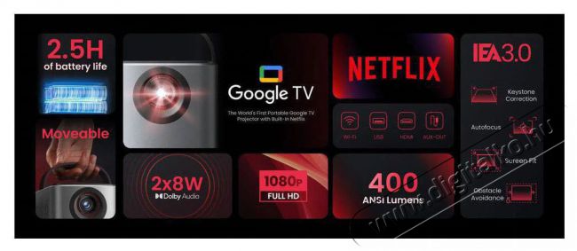 Az Anker Nebula Mars 3 Air projektor legfontosabb előnyei: - A Google TV platformra épülő, fizikailag kicsi projektor