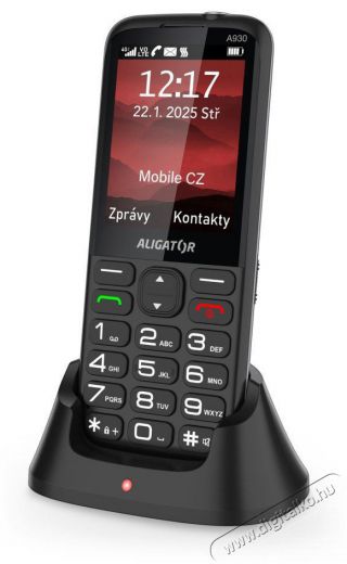 Aligator A930 mobiltelefonMegbízható társ biztonsági funkciókkal az idősek számáraAz Aligator A930 egy praktikus és intuitív mobiltelefon, amelyet olyan idősek számára terveztek, akik egyszerű kezelhetőséget, megbízható kommunikációt és biztonsági funkciókat szeretnének a mindennapi nyugalom érdekében. A készülék nagy és tiszta, 2,8"-es kijelzővel, nagy gombokkal ellátott billentyűzettel és rendkívül egyszerű kezelhetőséggel rendelkezik. A 4G/LTE támogatással és VoLTE technológiával kristálytiszta hangzást ígér a hívások során. Speciális funkciók, mint például SOS gomb GPS helymeghatározással és integrált mentőalkalmazás teszi ezt a telefont ideális választássá mindazok számára, akik mindig biztonságban akarják tudni magukat. A csomag tartalmaz egy praktikus töltőállványt, amely kényelmes és egyszerű töltést tesz lehetővé a kábel kezelése nélkül.