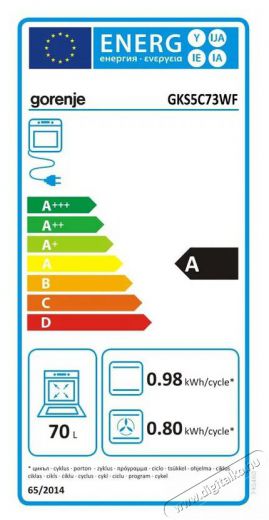 | Energiafogyasztás ciklusonként (statikus sütés) | 0,98 kWh |