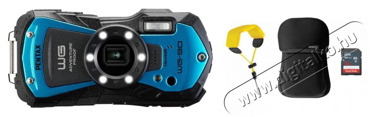 PENTAX WG-90 Blue outdoor kit A nagyszerű PENTAX WG-90 Blue outdoor kit kompakt fényképező segítségével remek képeket és videókat készíthetsz. CMOS típusú és 1/2,3" formátumú érzékelővel szerelték fel. Ami nagyban hozzájárul ahhoz, hogy Full HD felbontású videókat alkothassunk vele. Az érzékelő felbontása 16 Mpx, oldalaránya pedig 16:9. A digitális fényképezőgép funkcióit a 2,7" méretű képernyőn aktiválhatjuk. A Live view technológiával úgy láthatod a világot, mintha a keresőn keresztül néznéd. Az elkészült fényképek és videók SD, SDHC és SDXC típusú memóriakártyára kerülnek elmentésre. A készülék számára szükséges energiát egy akku garantálja, melynek kapacitása 925 mAh. Egy feltöltéssel akár 300 fénykép is elkészíthető. Ha sokszor kell sztatív nélkül videóznod, imádni fogod a beépített elektronikus képstabilizátort. Így nem kell aggódnod az elmosódott képek vagy a remegő videók miatt.