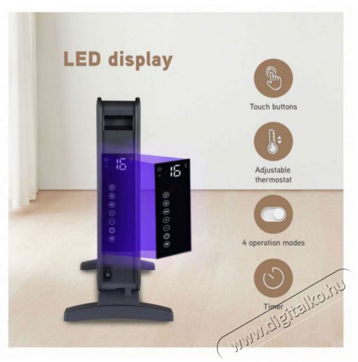 A neves Rohnson által tervezett konvektort akkor fogod méltányolni, amennyiben ideiglenes vagy kiegészítő fűtési forrást szeretnél vásárolni. Ennek a modellváltozatnak a fűtési teljesítménye 2000 W. Akár 35 m3 légterű helyiséget is ki tud fűteni. Hogy egyszerűen be lehessen állítani a hőfokot, evégett 4 teljesítményfokozattal bír. A LED kijelző információt nyújt az aktuális állapotról. A termosztát fenntartja a kívánt hőfokot. Zajszintje: 0 dB. A kiváló minőségű Rohnson konvektor méretei: 45 × 69,5 × 8,3 cm.