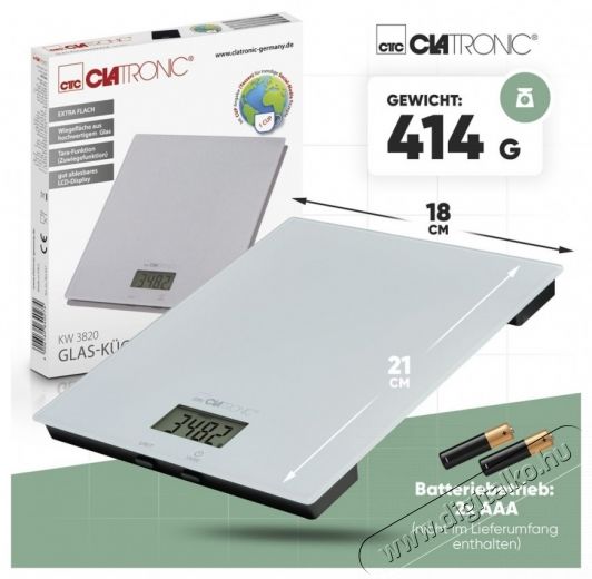 Clatronic KW 3820 fehér Üveg konyhai mérleg