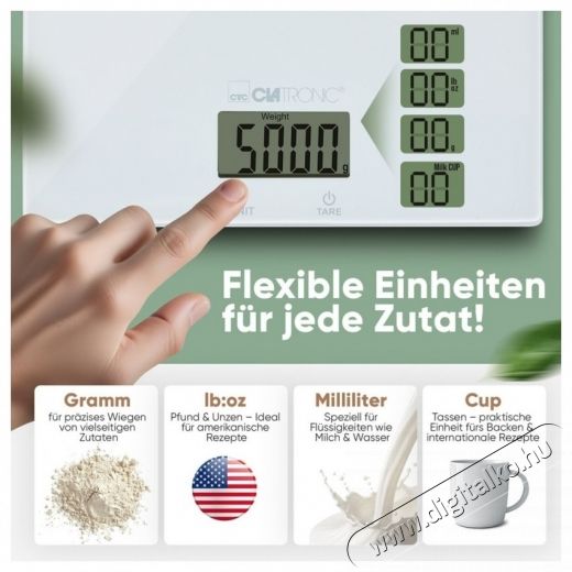 • Pontos eredmények minden hozzávalóhoz – A digitális konyhai mérleg akár 5000 g-ot is mér precíz 1 g-os lépésekben, és pontos főzési eredményeket biztosít