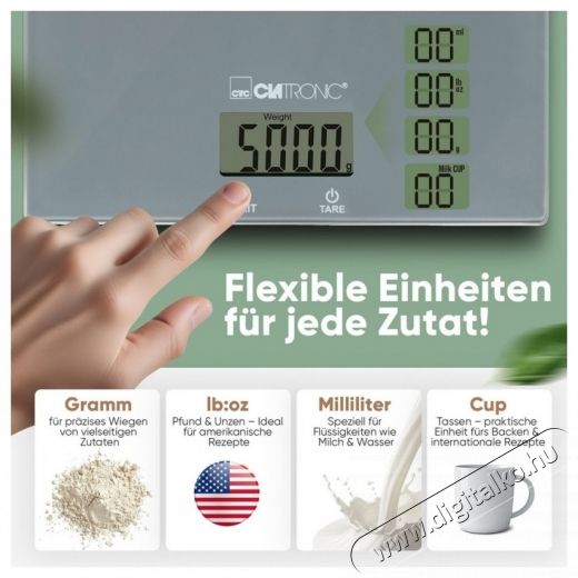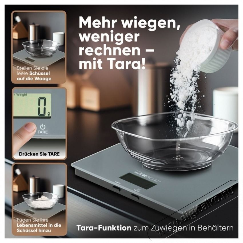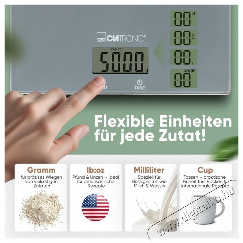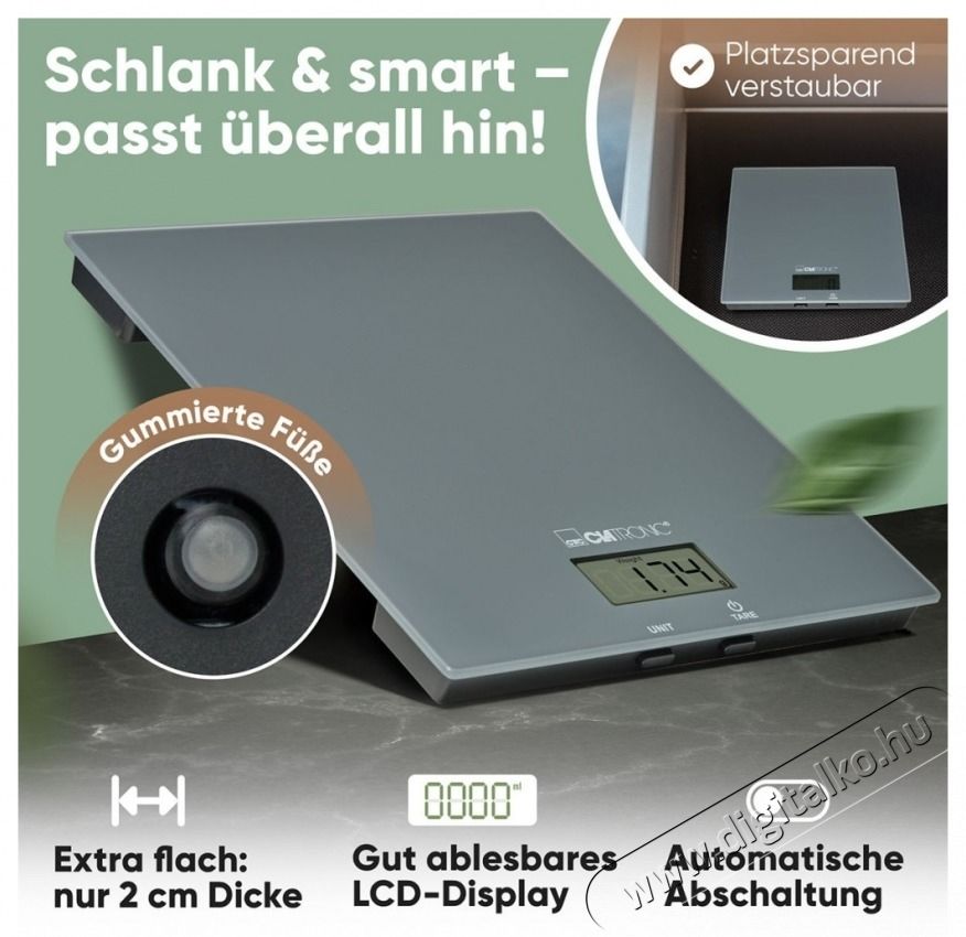 Clatronic KW 3820 szürke üveg konyhai mérleg