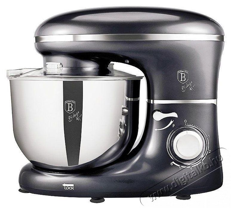 BerlingerHaus BH-9194 Carbon PRO Line Szerezz magadnak örömöt az új BerlingerHaus BH-9194 Carbon PRO Line konyhai robotgéppel. 1300 W-os motorral látták el, amely biztosítja a megbízható teljesítményt még a legigényesebb alapanyagok gyors feldolgozása során is. A motor teljesítménye igény szerint könnyedén módosítható 6 sebességben, így az aktuálisan szükséges sebességet tudjuk beállítani. Köszönhetően a bolygómozgásnak, melynek során a robotfej és a keverőfej az alapanyagok keverése közben egymással ellentétes irányban mozog, az egyes összetevők tökéletes keveréke garantált. A konyhai robotgépet, az egyszerű és hatékony tésztával való munka érdekében ellátták egy tágas tállal, melynek űrtartalma 6 l, amely tökéletesen megfelel minden többszemélyes háztartás számára.