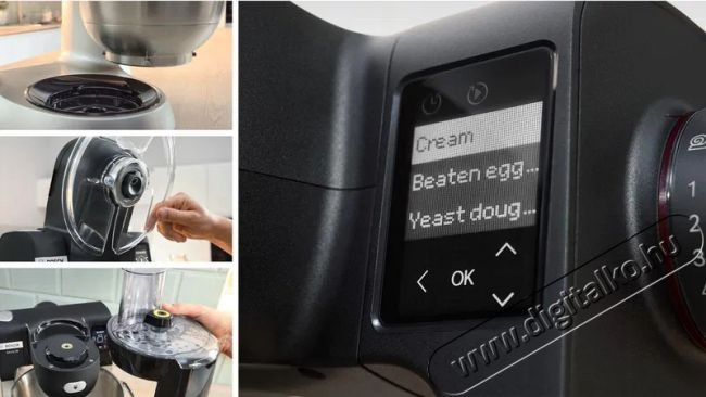 Az újonnan tervezett fém habverő légiesen könnyű tejszínhabot készít, míg a dagasztókar még a kemény tésztával is könnyedén megbirkózik – hatékonyan és erőfeszítés nélkül.