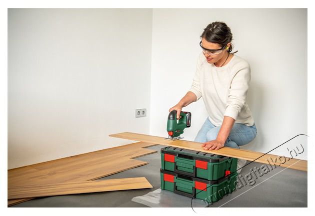 70 mm-es vágási mélységig fát fűrészel, tökéletes pl. B. laminált padlókhoz.